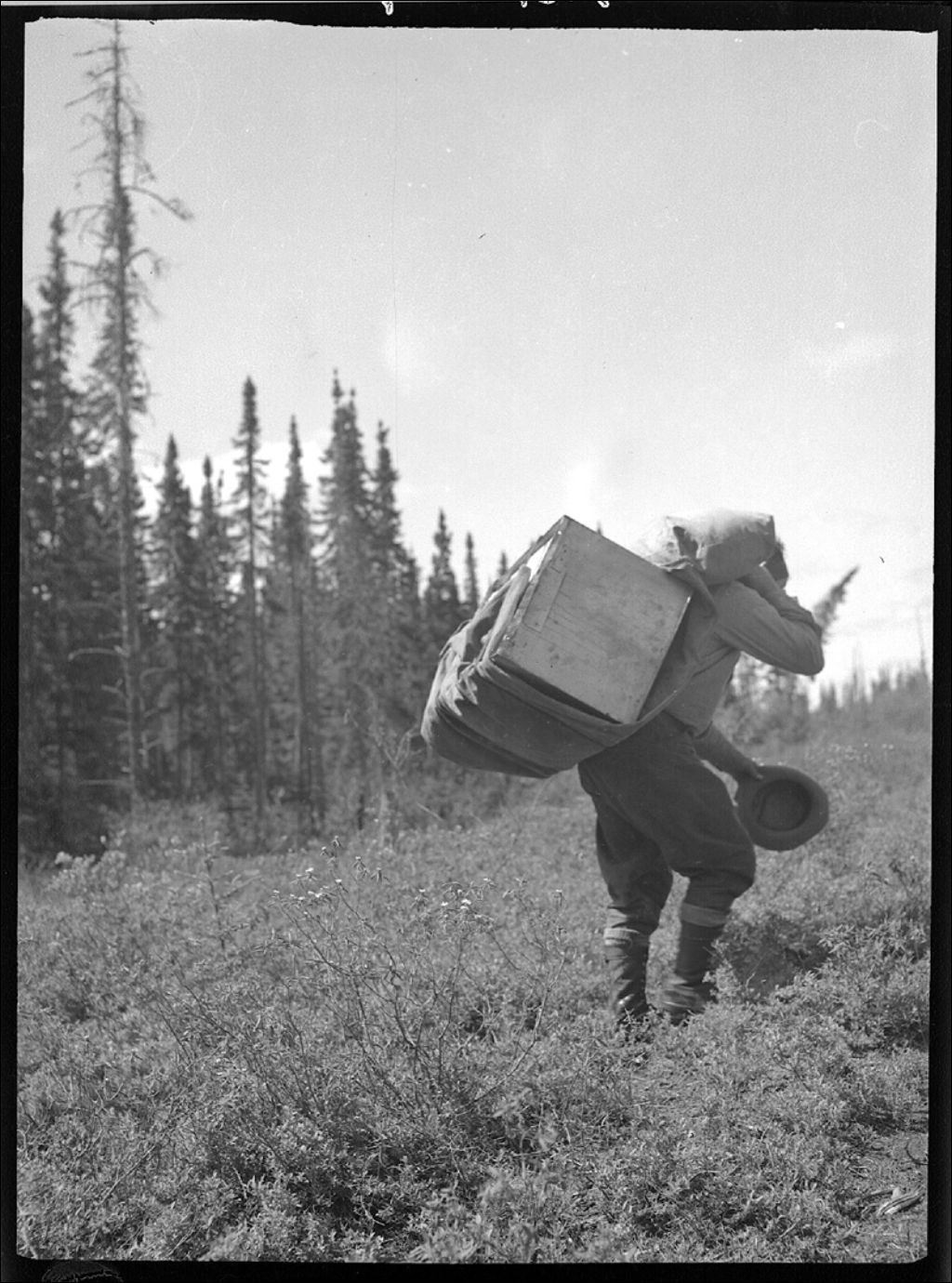 Scène de portage à Kodiga, canton Lavergne en Abitibi