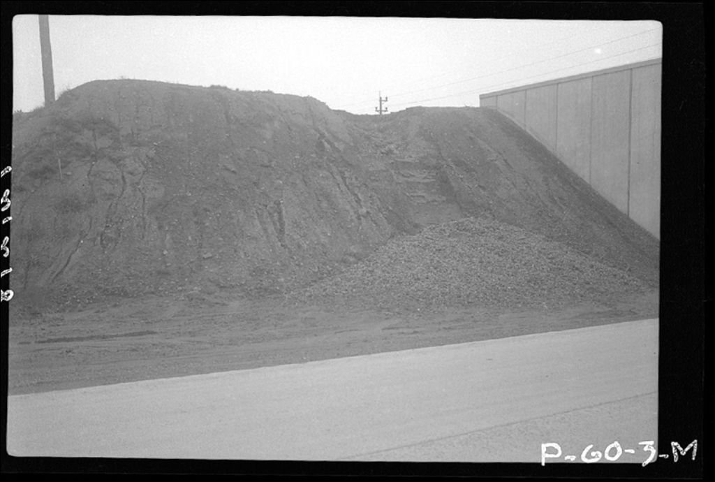 Talus aux abords du tunnel à Saint-Hilaire, comté de Rouville, 1943, Archives nationales à Québec, Fonds Ministère de la Culture et des Communications, (03Q,E6,S7,SS1,D2,P12298), R. Savary.