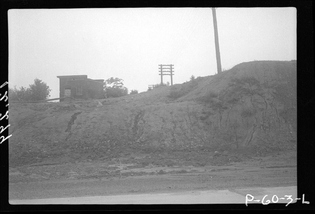 Talus aux abords du tunnel à Saint-Hilaire, comté de Rouville, 1943, Archives nationales à Québec, Fonds Ministère de la Culture et des Communications, (03Q,E6,S7,SS1,D2,P12299), R. Savary.