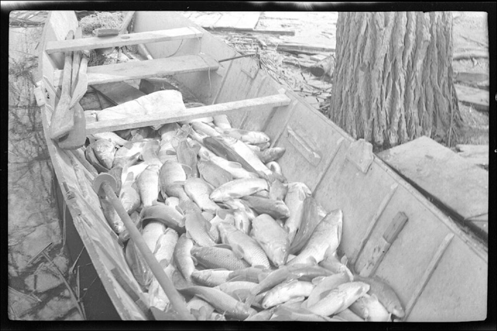 Pêche de carpes à Châteauguay, 1943, Archives nationales à Québec, Fonds Ministère de la Culture et des Communications, (03Q,E6,S7,SS1,D2,P12313), M. Gauthier.