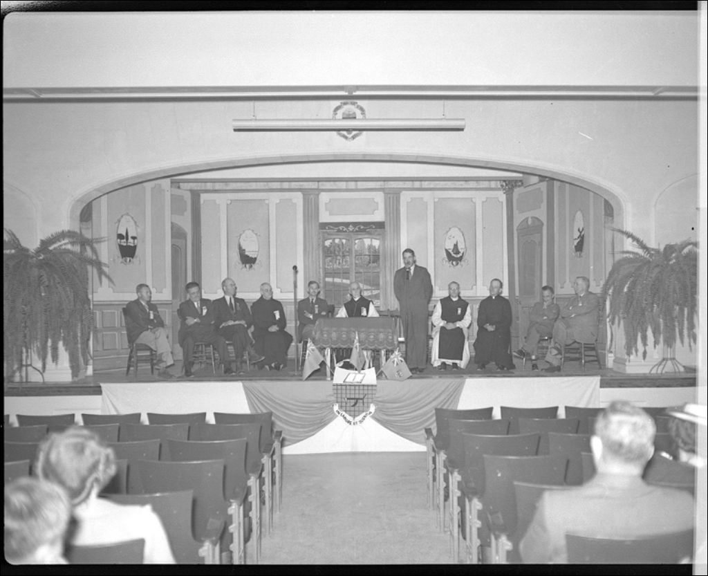 Le président des anciens agriculteurs de l'Institut agricole d'Oka, M. J. Charles Magnan, souhaite la bienvenue à ses confrères