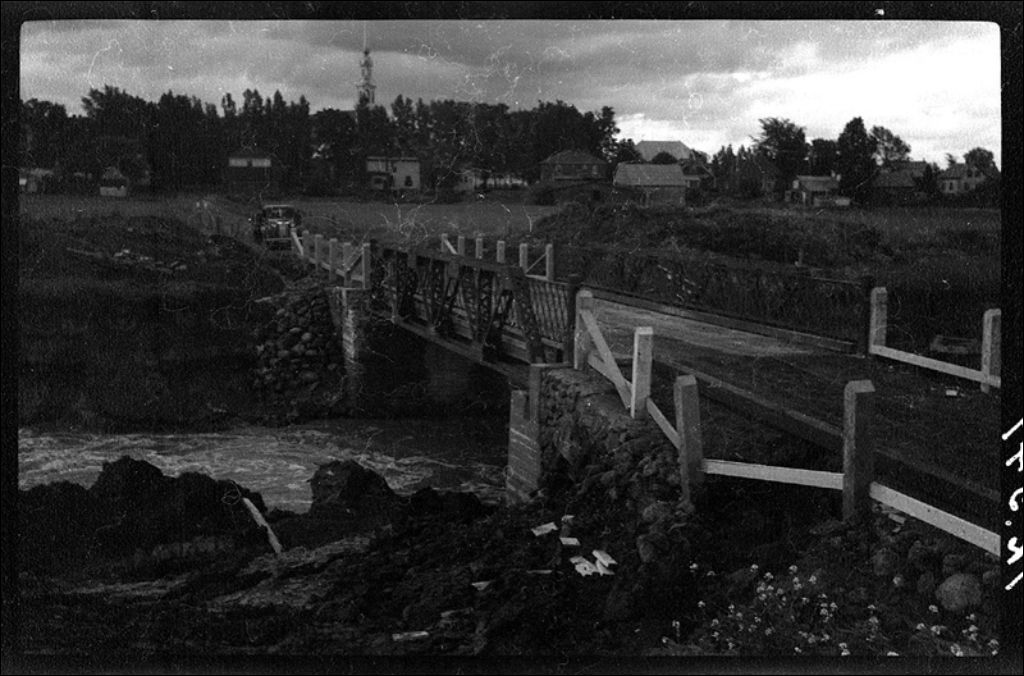 Mur de pierre entraîné par le glissement de l'écart nord-ouest à Saint-Jean-Baptiste, comté de Rouville, 1943, Archives nationales à Québec, Fonds Ministère de la Culture et des Communications, (03Q,E6,S7,SS1,D2,P12549), H.C. Dupuis.