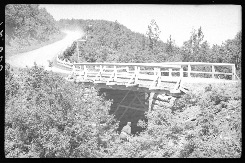 Pont sur le ruisseau Cloridorme à Cloridorme, 1943, Archives nationales à Québec, Fonds Ministère de la Culture et des Communications, (03Q,E6,S7,SS1,D2,P12635), Raymond Marchand.