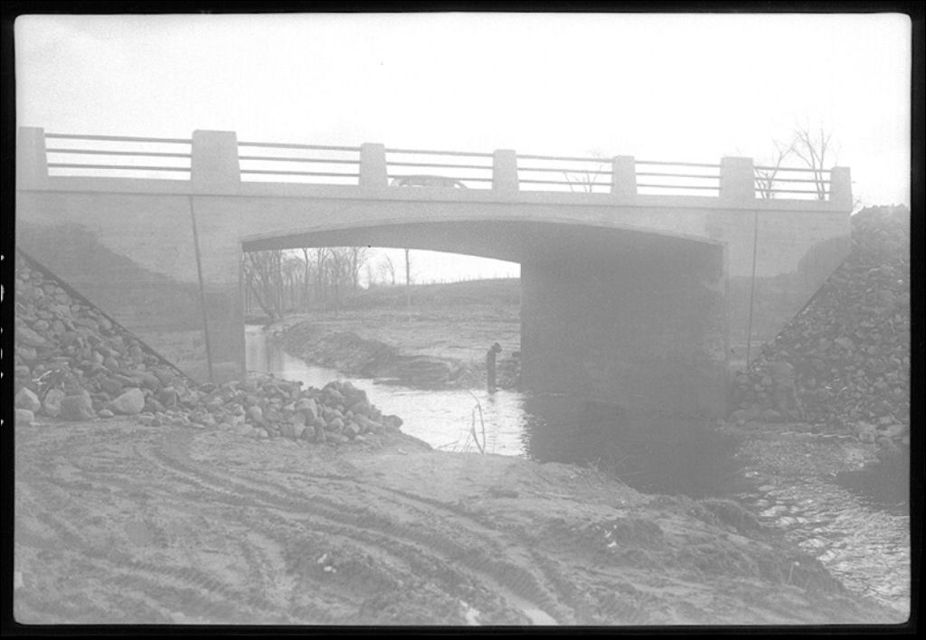Pont sur la rivière des Saults, route 9 à Saint-Cyrille, comté de Drummond, 1943, Archives nationales à Québec, Fonds Ministère de la Culture et des Communications, (03Q,E6,S7,SS1,D2,P13214), R. Savary.