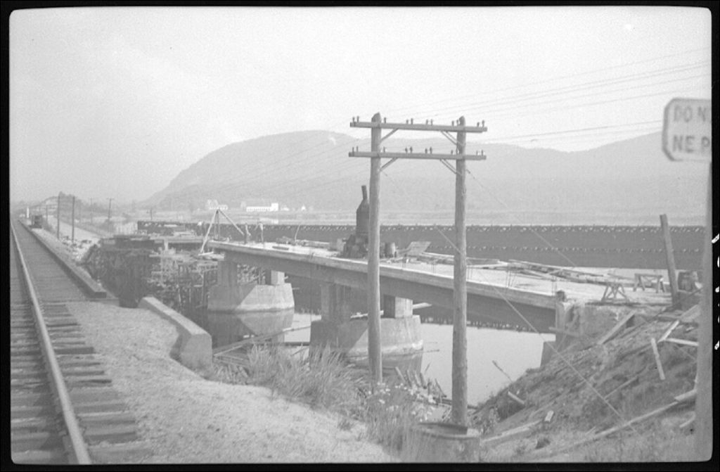 Pont Bordeleau sur la Grande Bostonnais à La Tuque, 1943, Archives nationales à Québec, Fonds Ministère de la Culture et des Communications, (03Q,E6,S7,SS1,D2,P13757), Camille Milot.