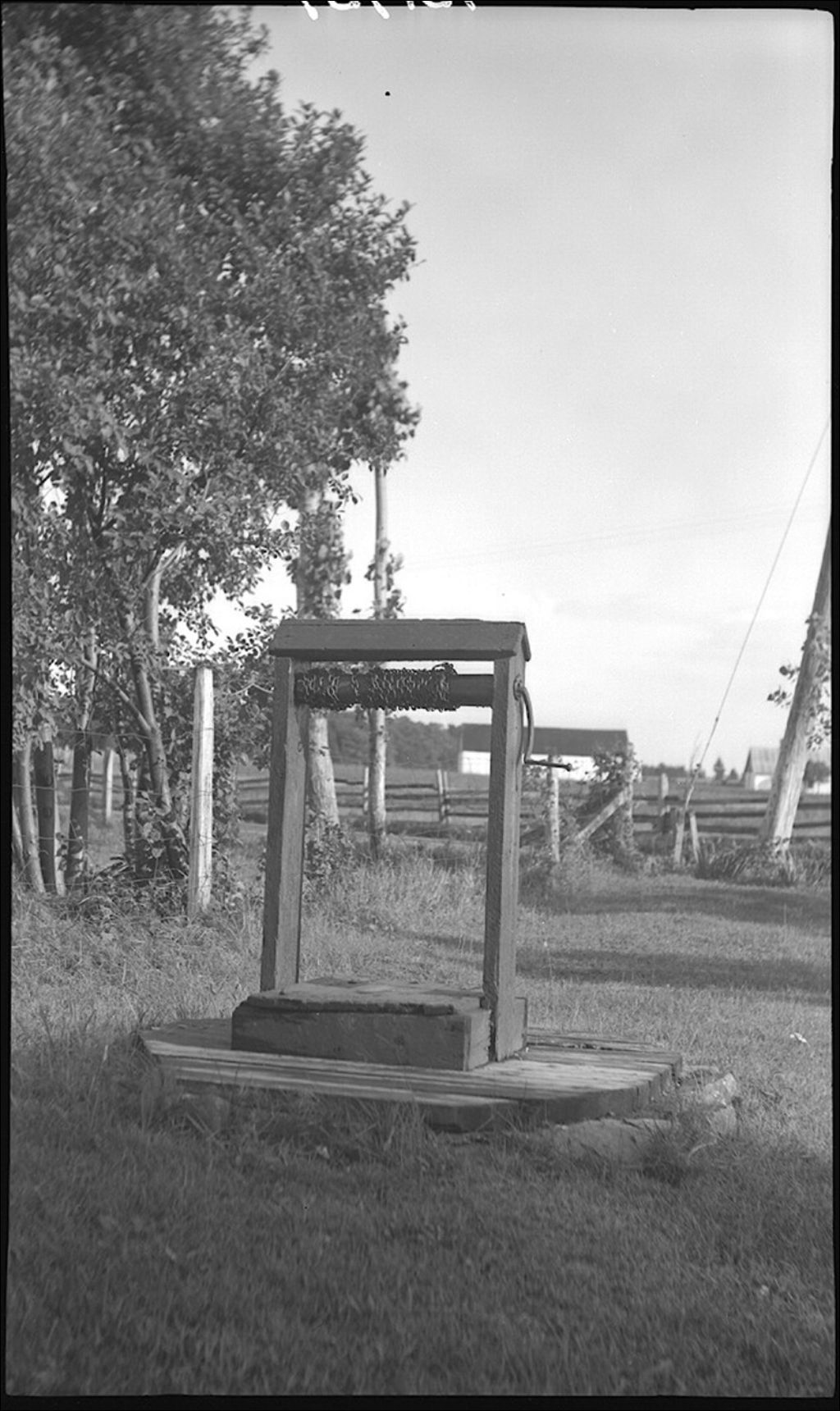 Treuil du puits rustique à Beaumont, 1943, Archives nationales à Québec, Fonds Ministère de la Culture et des Communications, (03Q,E6,S7,SS1,D2,P13939), Eugène Gagné.