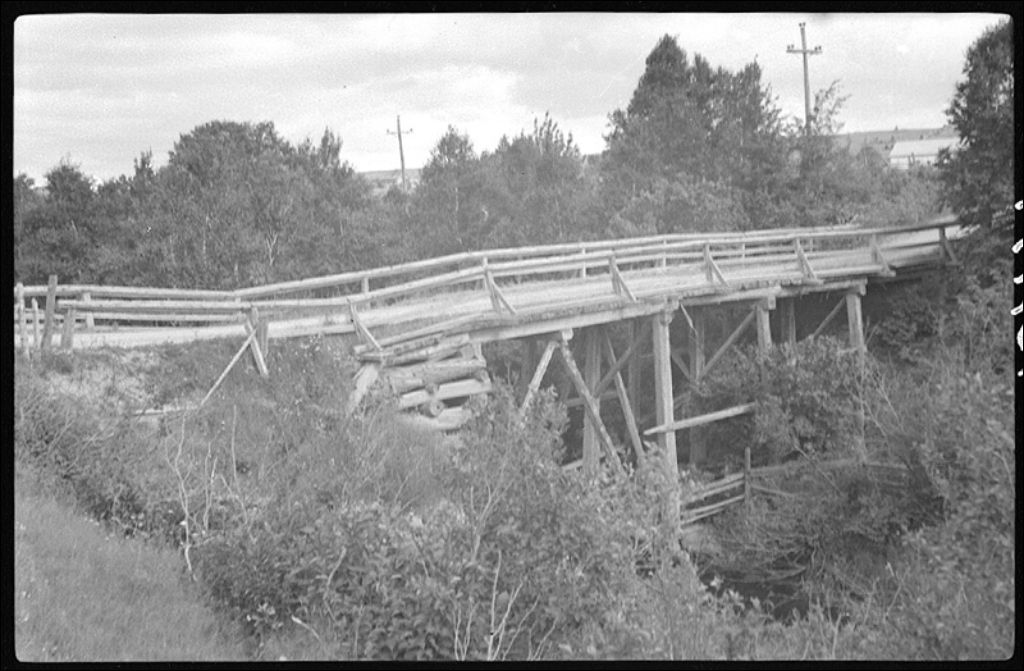 Pont de la route Bellavance sur la décharge du lac Malobes à Saint-Fabien, comté de Rimouski, 1943, Archives nationales à Québec, Fonds Ministère de la Culture et des Communications, (03Q,E6,S7,SS1,D2,P13974), Raymond Marchand.
