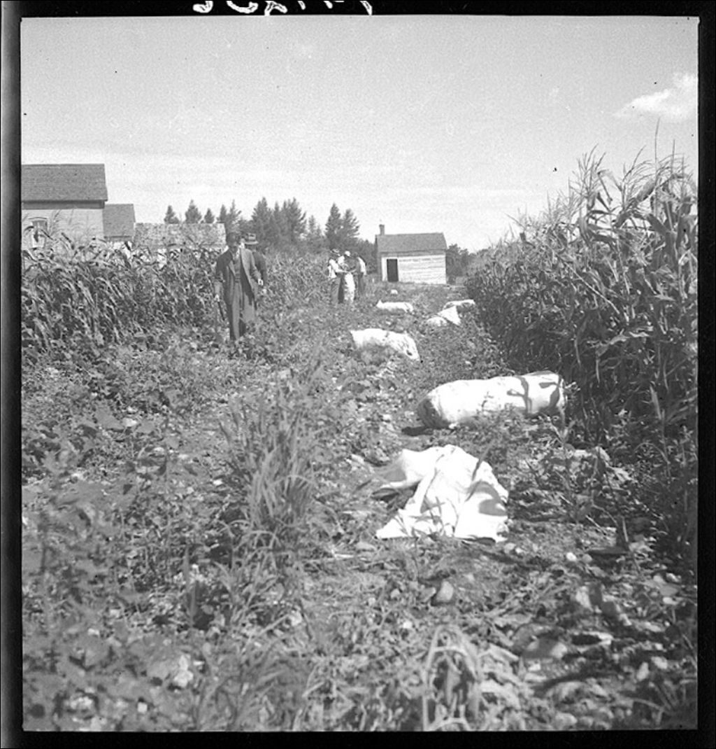 Coccinelles mexicaines sur des haricots à Saint-Anicet, comté de Châteauguay, 1943, Archives nationales à Québec, Fonds Ministère de la Culture et des Communications, (03Q,E6,S7,SS1,D2,P14256), G. Gauthier.
