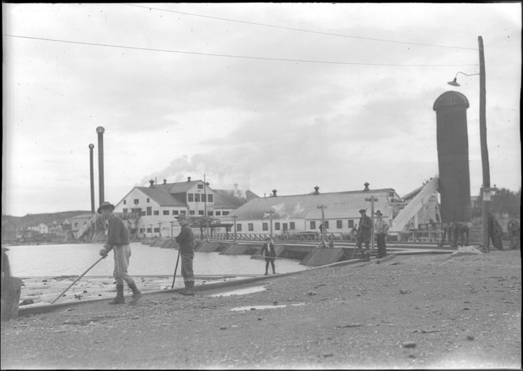 Scierie de la Price Brothers à Matane, 1943, Archives nationales à Québec, Fonds Ministère de la Culture et des Communications, (03Q,E6,S7,SS1,D2,P14381), J.W. Michaud.