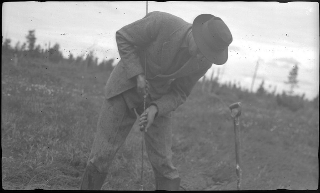 Échantillonage de tourbe à Saint-Jean-Chrysostôme, 1943, Archives nationales à Québec, Fonds Ministère de la Culture et des Communications, (03Q,E6,S7,SS1,D2,P14545), H. Girard.