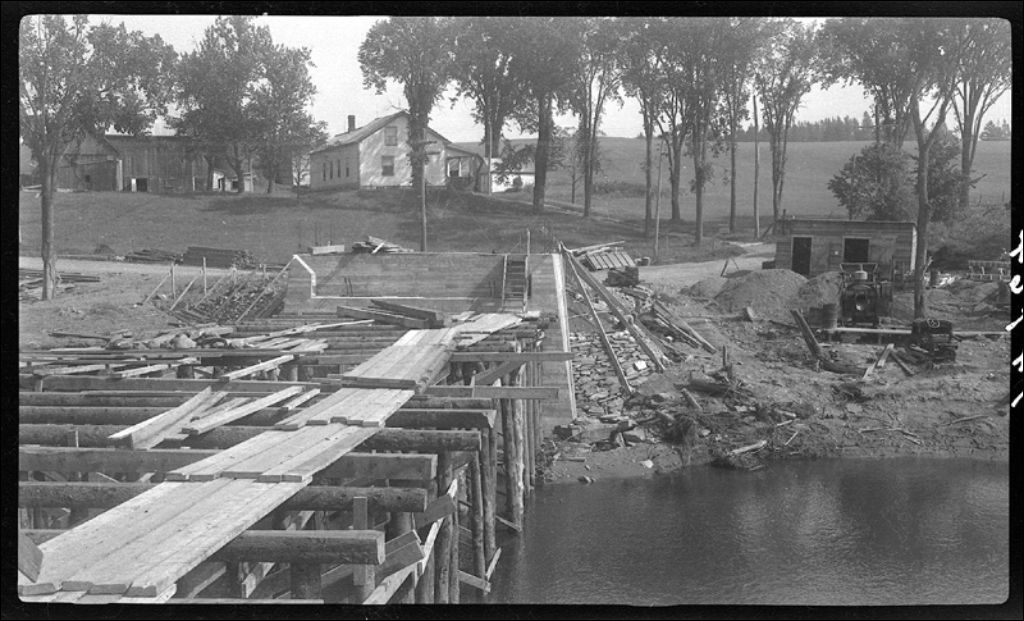 Pont sur la rivière aux Saumons à Huntingville, comté de Sherbrooke, 1943, Archives nationales à Québec, Fonds Ministère de la Culture et des Communications, (03Q,E6,S7,SS1,D2,P14764), L. Langlois.