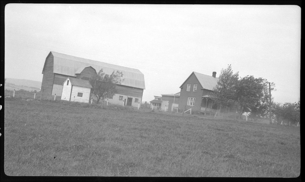 Construction de la ferme de M. Ed. Labelle à Disraëli, 1943, Archives nationales à Québec, Fonds Ministère de la Culture et des Communications, (03Q,E6,S7,SS1,D2,P14852), G. Gaudette.