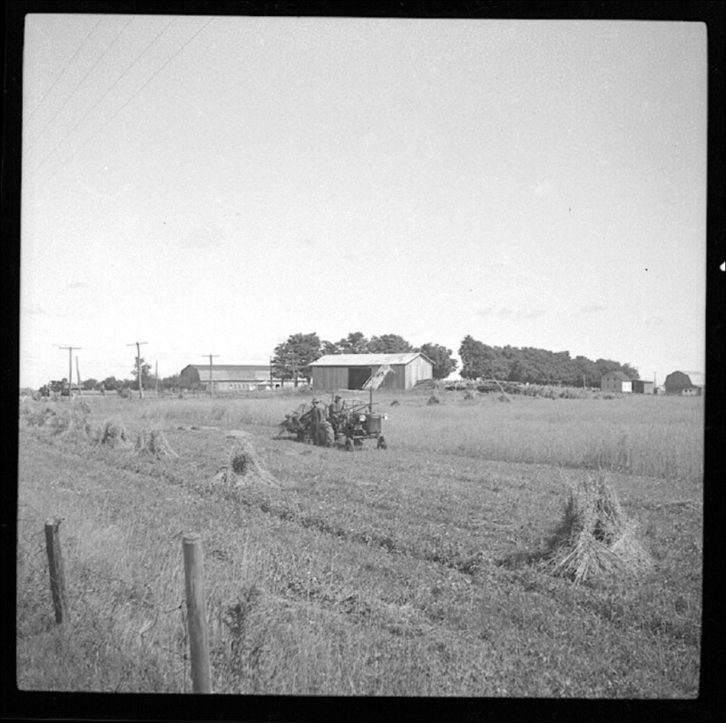 Faucheuse-lieuse à l'ouvrage à Stanfold