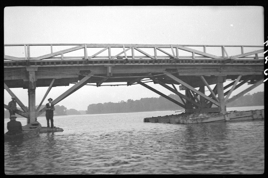 Pont Plessis Bélair sur la rivière Sainte-Rose à Laval, 1943, Archives nationales à Québec, Fonds Ministère de la Culture et des Communications, (03Q,E6,S7,SS1,D2,P15274), Raymond Marchand.