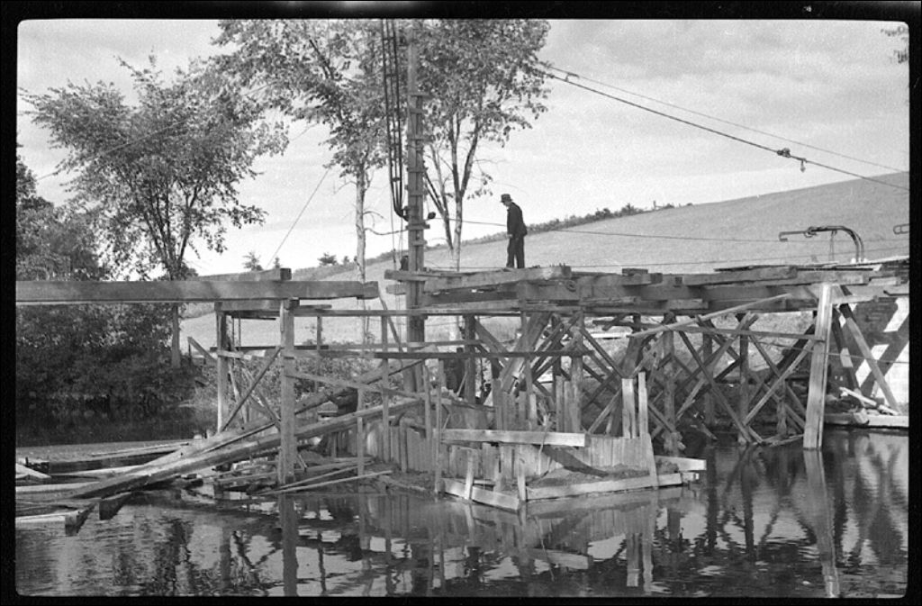 Pont Murray sur la rivière l'Achigan à Sainte-Sophie, comté de Terrebonne, 1943, Archives nationales à Québec, Fonds Ministère de la Culture et des Communications, (03Q,E6,S7,SS1,D2,P15298), H.C. Dupuis.