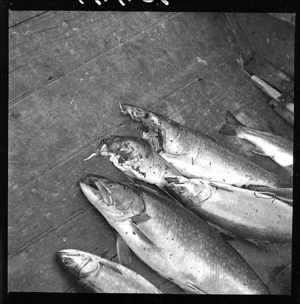 Dommages faits par les goélands aux truites de mer à Saint-Augustin, Côte-Nord, 1943, Archives nationales à Québec, Fonds Ministère de la Culture et des Communications, (03Q,E6,S7,SS1,D2,P15441), Vadim Dimitrovicht Vladykov.