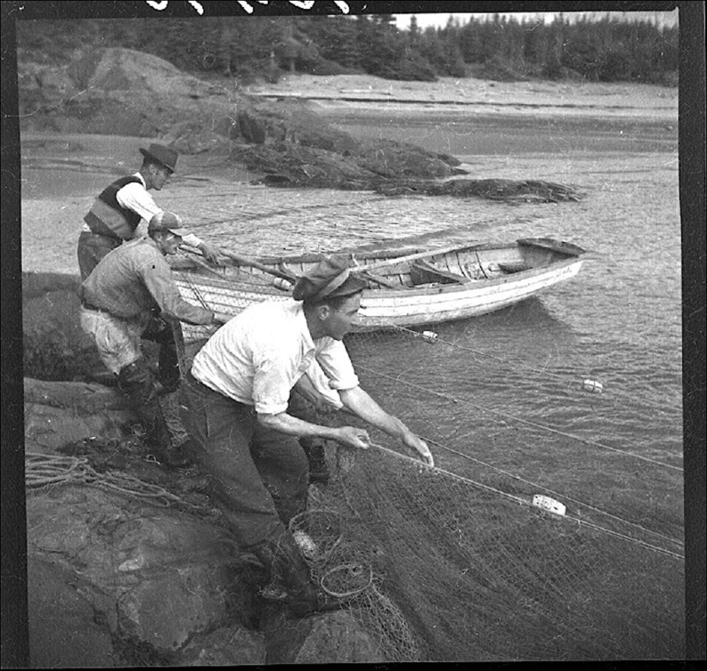 Seinage aux lançons utilisés comme boette à morue à Rivière-à-la-Chaloupe, 1943, Archives nationales à Québec, Fonds Ministère de la Culture et des Communications, (03Q,E6,S7,SS1,D2,P15490), Vadim Dimitrovicht Vladykov.