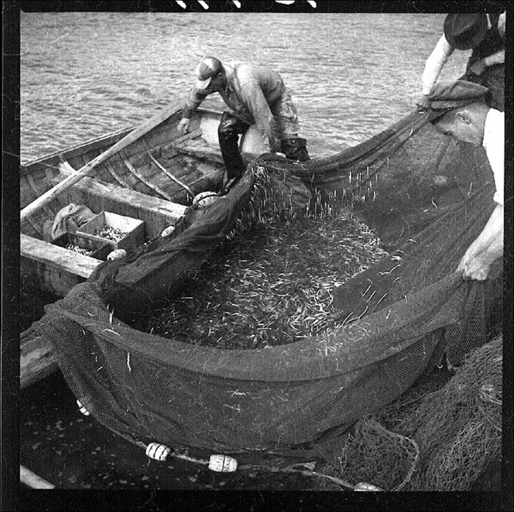 Seinage aux lançons utilisés comme boette à morue à Rivière-à-la-Chaloupe, 1943, Archives nationales à Québec, Fonds Ministère de la Culture et des Communications, (03Q,E6,S7,SS1,D2,P15491), Vadim Dimitrovicht Vladykov.