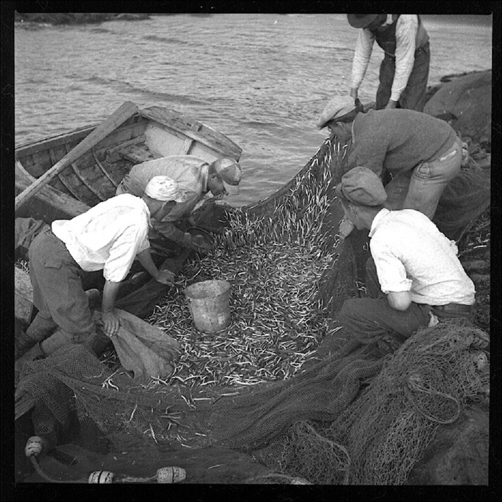 Seinage aux lançons utilisés comme boette à morue à Rivière-à-la-Chaloupe, 1943, Archives nationales à Québec, Fonds Ministère de la Culture et des Communications, (03Q,E6,S7,SS1,D2,P15496), Vadim Dimitrovicht Vladykov.
