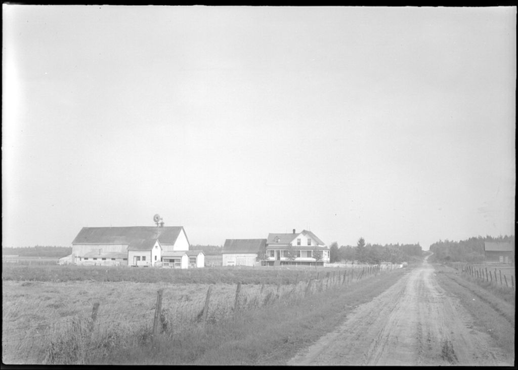 Bâtisses de ferme de D. Rivest à Laverlochère, comté de Témiscamingue, 1943, Archives nationales à Québec, Fonds Ministère de la Culture et des Communications, (03Q,E6,S7,SS1,D2,P15510), Fernand Dufour.