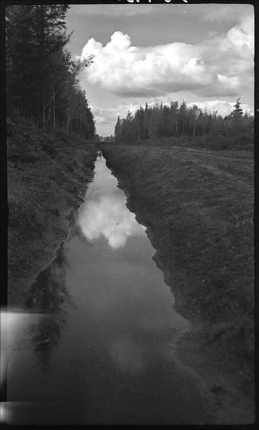 Chemin en construction à Saint-Lucien, comté de Drummond, 1943, Archives nationales à Québec, Fonds Ministère de la Culture et des Communications, (03Q,E6,S7,SS1,D2,P15920), Irénée Beaudet.