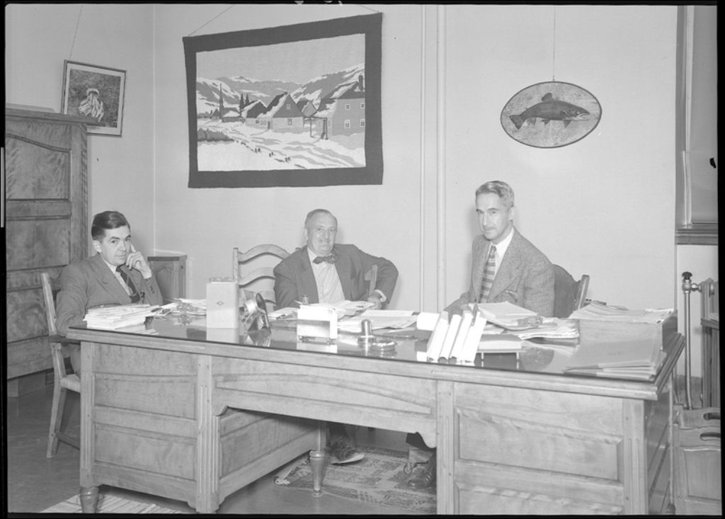 M. Rinn (possiblement Renn), président de A.A.A., au bureau de M. Maurice Hébert