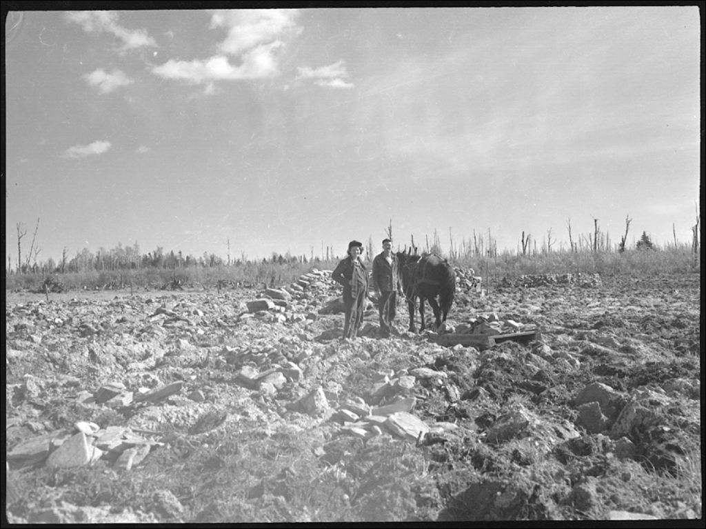 Épierrement sur la première acre labourée de M. et Mme Ludger Bouchard à Saint-Zacharie, comté de Dorchester
