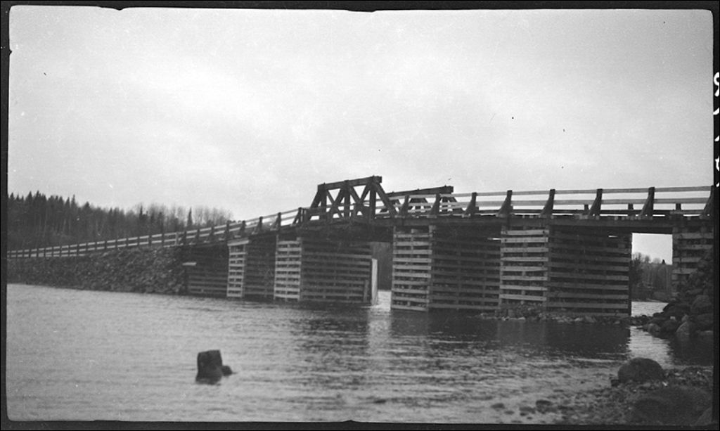 Pont des lacs Simon et Barrière à Chêneville, comté de Papineau, 1943, Archives nationales à Québec, Fonds Ministère de la Culture et des Communications, (03Q,E6,S7,SS1,D2,P16492), Irénée Beaudet.