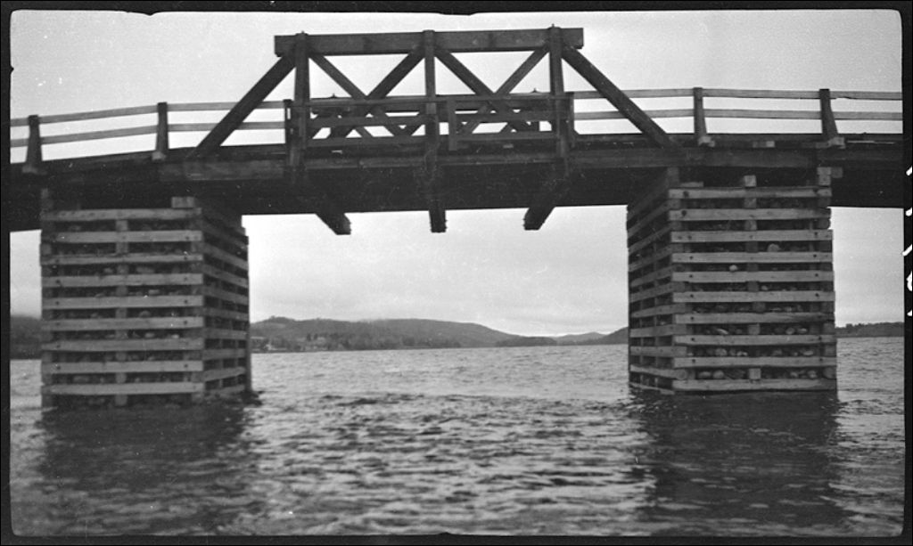 Pont des lacs Simon et Barrière à Chêneville, comté de Papineau, 1943, Archives nationales à Québec, Fonds Ministère de la Culture et des Communications, (03Q,E6,S7,SS1,D2,P16494), Irénée Beaudet.