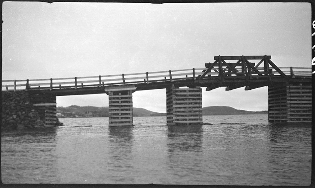 Pont des lacs Simon et Barrière à Chêneville, comté de Papineau, 1943, Archives nationales à Québec, Fonds Ministère de la Culture et des Communications, (03Q,E6,S7,SS1,D2,P16495), Irénée Beaudet.