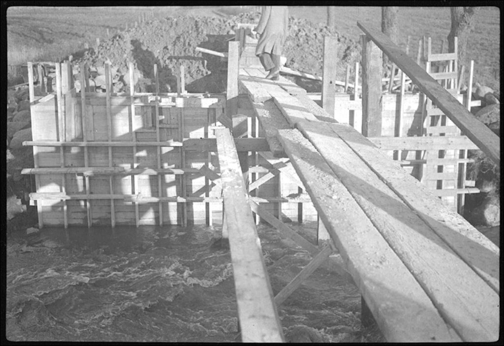 Pont sur le ruisseau Chartrier dans la montée Bertrand à Sainte-Anne-de-Sabrevois, comté d'Iberville, 1943, Archives nationales à Québec, Fonds Ministère de la Culture et des Communications, (03Q,E6,S7,SS1,D2,P16523), Roméo Savary.