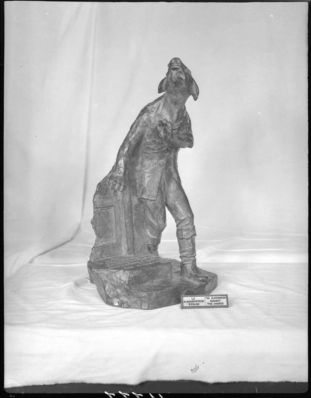 Statue en bronze d'Alfred Laliberté au Musée provincial de Québec: «Le blasphémateur d'église»