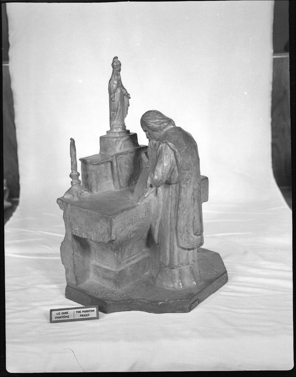 Statue en bronze d'Alfred Laliberté: «Le curé fantôme», 1943, Archives nationales à Québec, Fonds Ministère de la Culture et des Communications, (03Q,E6,S7,SS1,D2,P16791), Paul Carpentier.