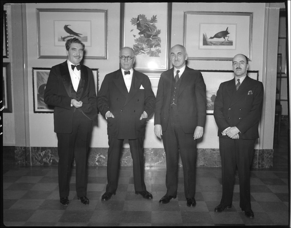 Groupe à l'inauguration de l'exposition Audubon au Musée provincial de Québec. De gauche à droite: MM. P. Rainville, William H. Coverdale, J.A. Mathewson et Jean Bruchési