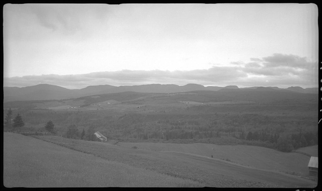 Panorama sur la rive gauche de la rivière du Gouffre à Saint-Urbain, comté de Charlevoix, 1943, Archives nationales à Québec, Fonds Ministère de la Culture et des Communications, (03Q,E6,S7,SS1,D2,P17533), Louis Coderre.