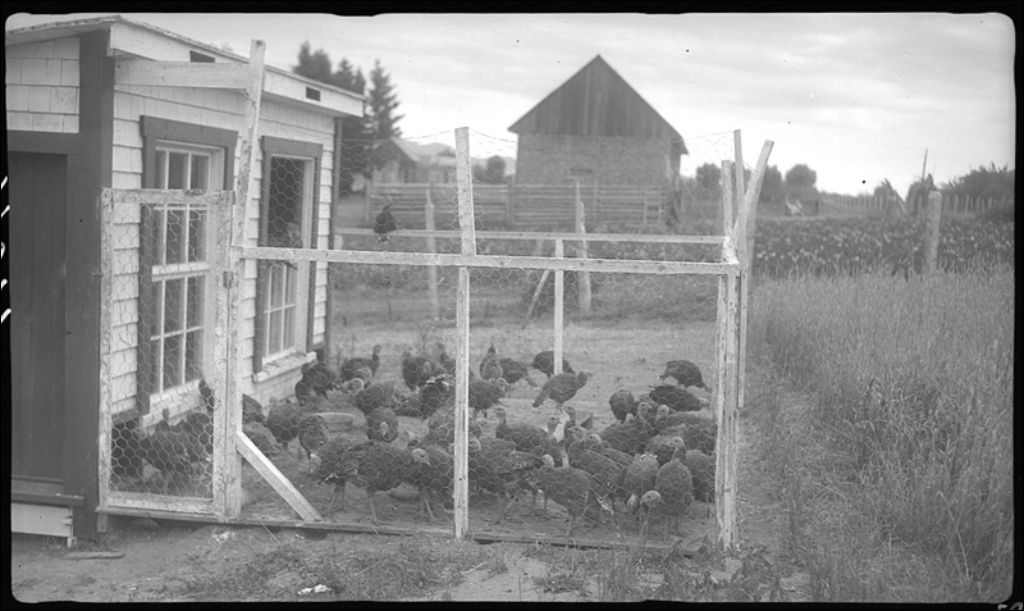 Dindonneaux à l'île aux Coudres, 1943, Archives nationales à Québec, Fonds Ministère de la Culture et des Communications, (03Q,E6,S7,SS1,D2,P17577), Louis Coderre.