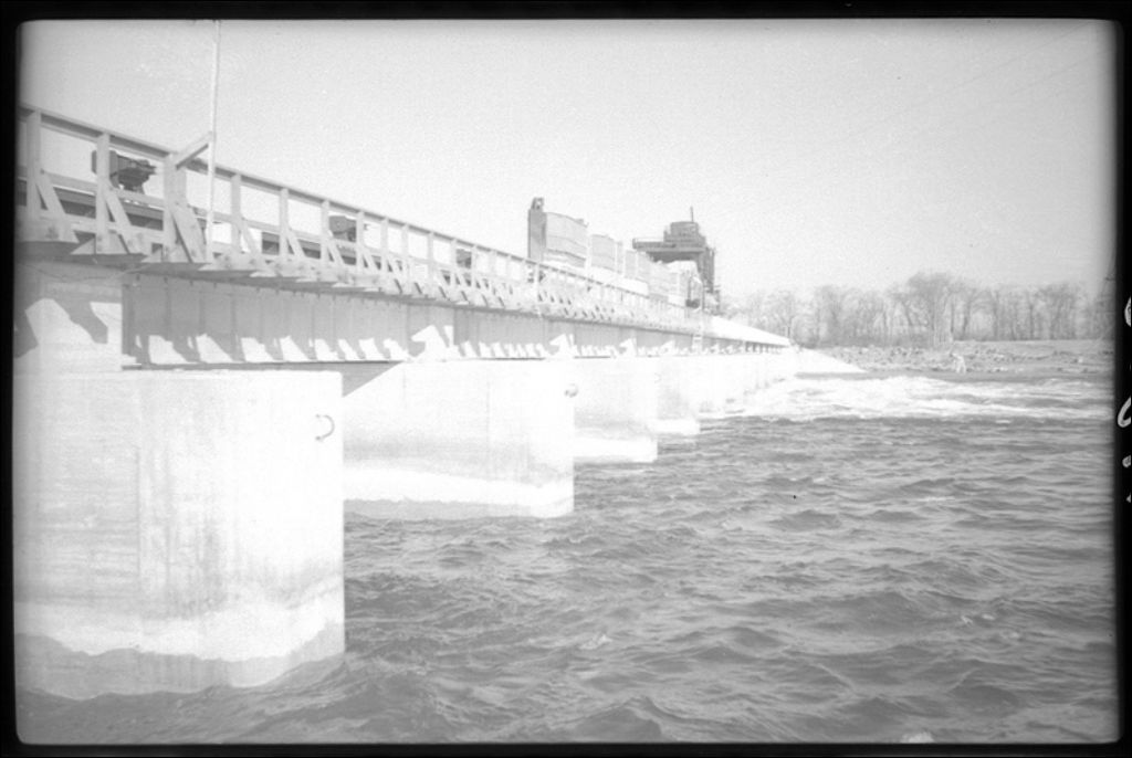 Pont sur le fleuve Saint-Laurent entre Valleyfield et Coteau-du-Lac, 1944, Archives nationales à Québec, Fonds Ministère de la Culture et des Communications, (03Q,E6,S7,SS1,D2,P17856), L. Martin.