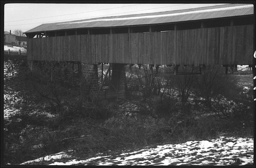 Pont sur la rivière Salvail à Saint-Jude, comté de Saint-Hyacinthe, 1944, Archives nationales à Québec, Fonds Ministère de la Culture et des Communications, (03Q,E6,S7,SS1,D2,P17906), Paul de Lamirande.