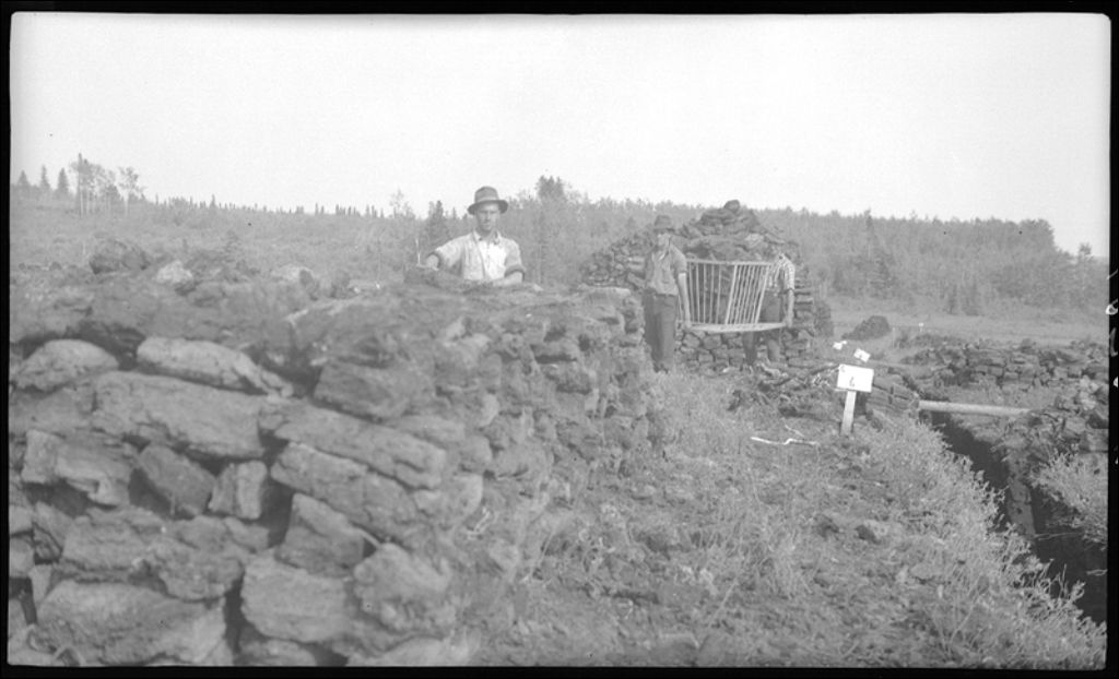 Tourbière à l'Isle-Verte: extraction, empilage, etc.