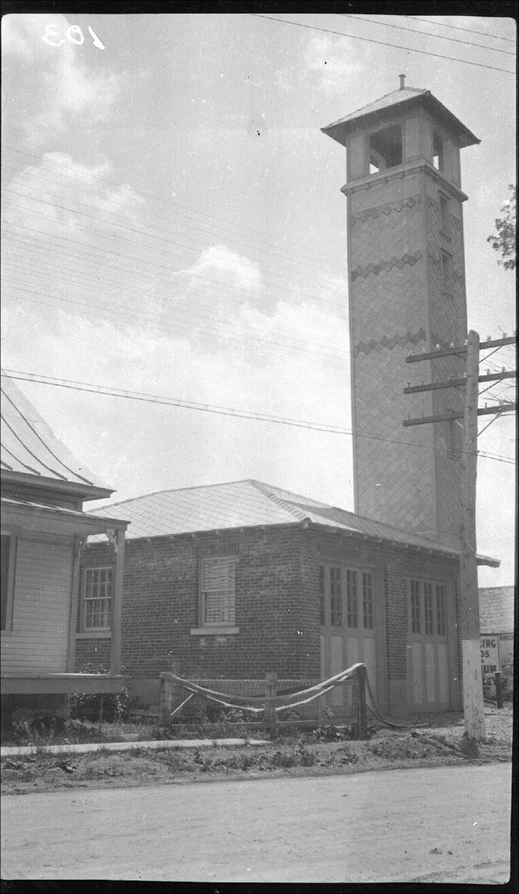 Bâtisse des pompes réservoir, poste de pompiers à Verchères, 1944, Archives nationales à Québec, Fonds Ministère de la Culture et des Communications, (03Q,E6,S7,SS1,D2,P19195), Ernest Lavigne.