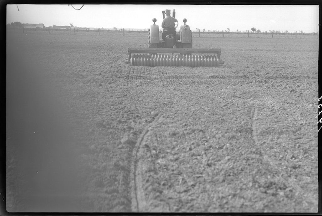 Rouleau cannelé en marche à Saint-Polycarpe, comté de Soulanges, 1944, Archives nationales à Québec, Fonds Ministère de la Culture et des Communications, (03Q,E6,S7,SS1,D2,P19758), Roland L'Espérance.