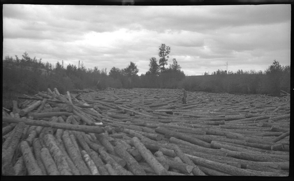 Billots en flotte sur la rivière Macamic à Saint-Mathias, Abitibi