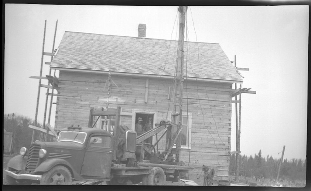 Foreuse de puits artésiens en opération chez Wilfrid Soucy à La Trinité-des-Monts