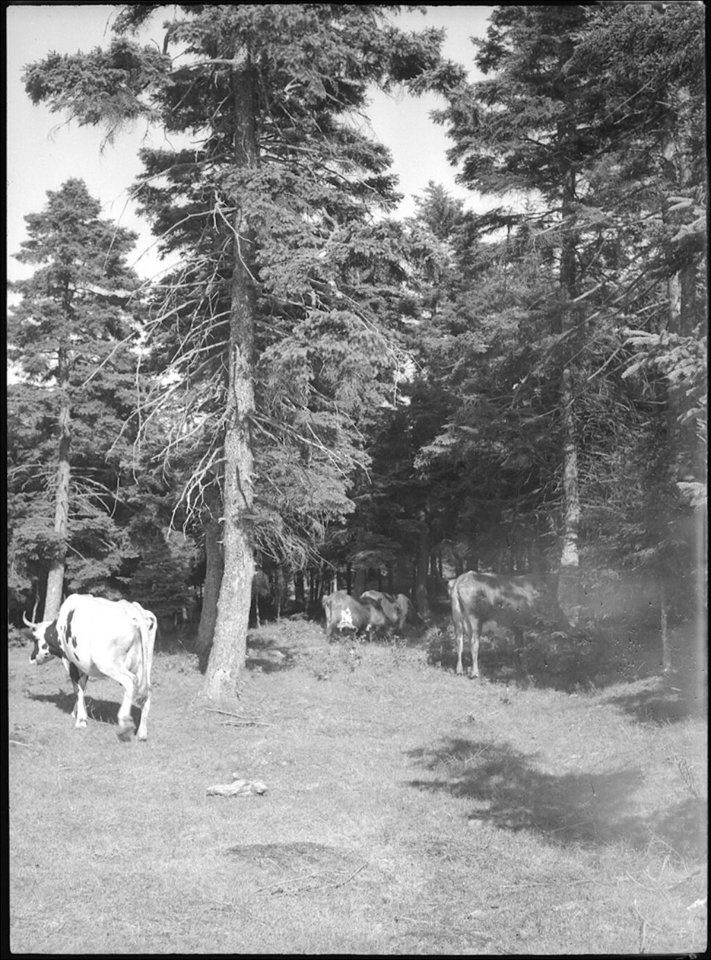 Bétail en forêt à Berthier, comté de Montmagny, 1944, Archives nationales à Québec, Fonds Ministère de la Culture et des Communications, (03Q,E6,S7,SS1,D2,P20574), J.W. Michaud.