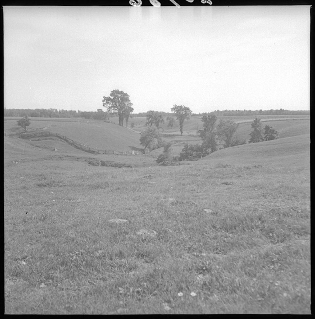 Coulées et ravins dans l'argile à Sainte-Gertrude, comté de Nicolet, 1944, Archives nationales à Québec, Fonds Ministère de la Culture et des Communications, (03Q,E6,S7,SS1,D2,P20786), A. Mailloux.