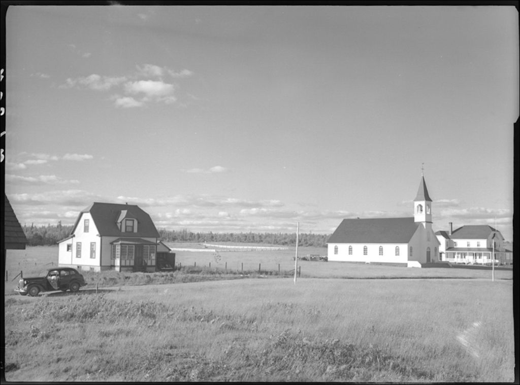 Église, presbytère et résidence de la garde-malade à Saint-Jogues, comté de Bonaventure