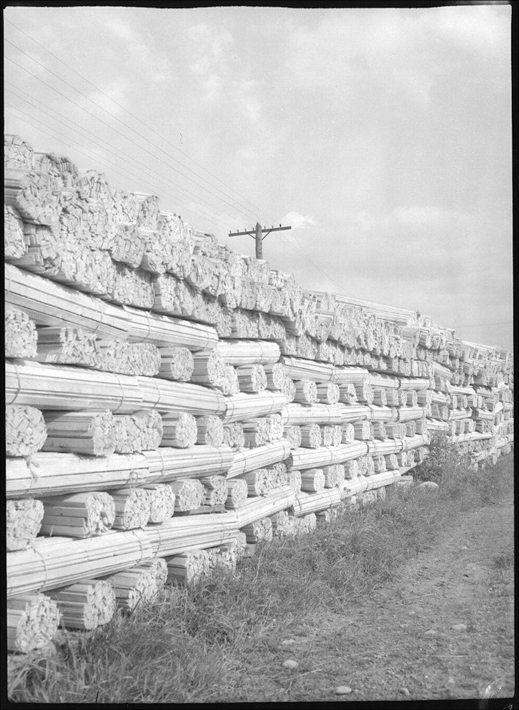 Scierie Durette et Guérette: Empilement des lattes à Rivière-Bleue