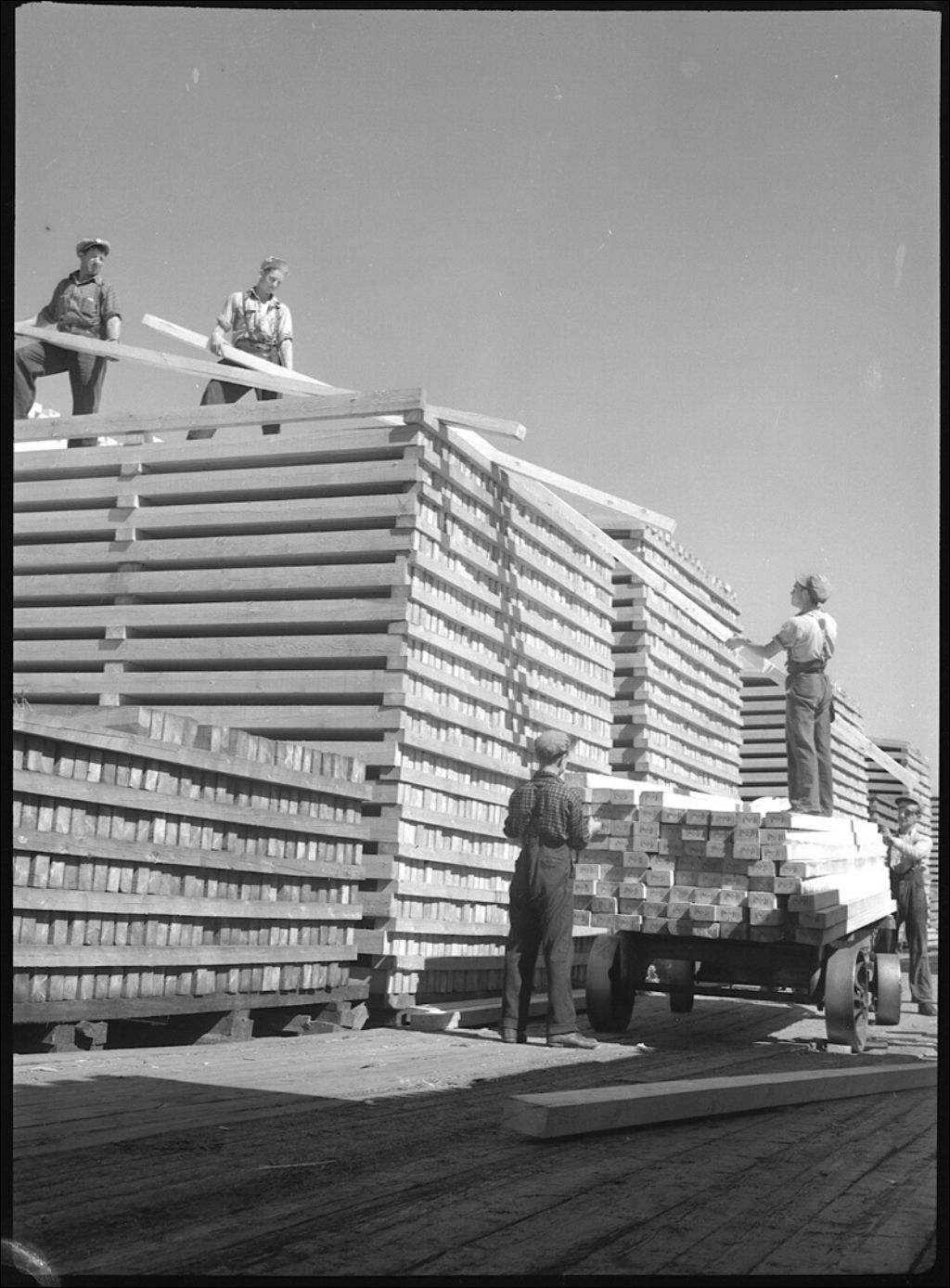 Expédition du bois à la scierie Price Brothers à Rimouski, 1944, Archives nationales à Québec, Fonds Ministère de la Culture et des Communications, (03Q,E6,S7,SS1,D2,P21278), J.W. Michaud.