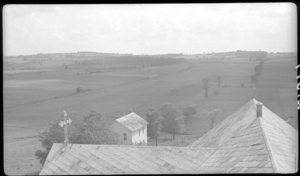 Panorama vu du clocher à L'Avenir, comté de Drummond, 1944, Archives nationales à Québec, Fonds Ministère de la Culture et des Communications, (03Q,E6,S7,SS1,D2,P21397), Benoît Brouillette.