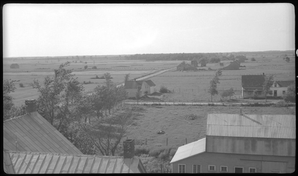 Panorama vu du clocher à Saint-Majorique-de-Grantham, comté de Drummond, 1944, Archives nationales à Québec, Fonds Ministère de la Culture et des Communications, (03Q,E6,S7,SS1,D2,P21403), Benoît Brouillette.